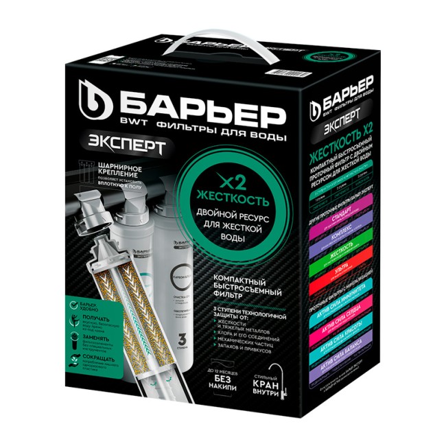 Компактный фильтр с системой мгновенной замены картриджей с двойным ресурсом защиты от накипи. Благодаря оптимально подобранному сочетанию компонентов обеспечивает не только базовую очистку, но и эффективно удаляет накипь. Ресурс до 12 месяцев. Конструкция фильтра позволяет менять картриджи без инструментов и специальных ключей, а компактные размеры установить фильтр даже на небольшой кухне. Производительность - 2 л/мин.