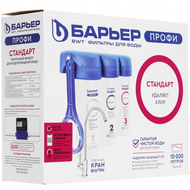 Комплексная очистка водопроводной воды от всех основных содержащихся в ней вредных примесей. Быстрое подключение к водопроводу Quick Fitting.
