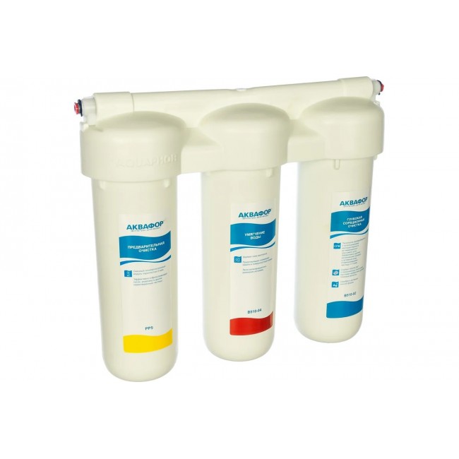 Благодаря особенностям структуры модулей фильтр удаляет ржавчину, примеси и активно борется с мутностью. Уникальный сорбент Аквален надежно устраняет активный хлор, тяжелые металлы и другие опасные вещества. Фильтр для воды Аквафор Трио Норма Умягчающий — экономичный вариант глубокой очистки воды. Обратите внимание: Если без использования фильтра накипь в чайнике появляется через несколько дней – у вас вода высокой жесткости. Это значит, что менять или регенерировать умягчающие модули придётся слишком часто (раз в 2-4 недели). В таком случае вам выгоднее использовать фильтры обратного осмоса – они полностью удаляют избыток солей жесткости, защитят технику от накипи, а ваши напитки и еду от постороннего привкуса. Картриджи меняются раз в полгода и раз в год.