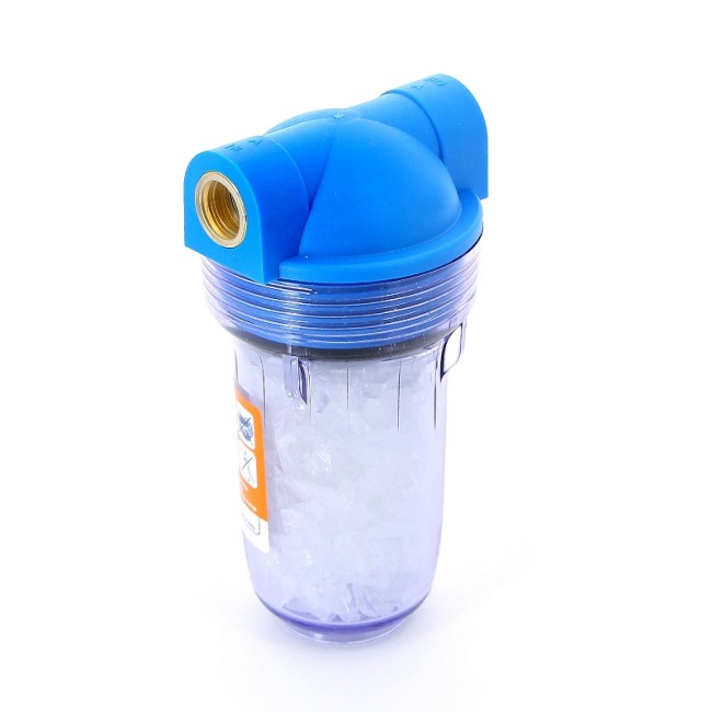 Фильтр-колба с кристаллическим полифосфатом для стиральных машин работает по принципу непропорциональной системы дозирования и разработана специально для защиты стиральных машинок. Дозатор можно просто и быстро установить на стандартный кран подачи к стиральной машине. Дозатор Dosal служит для защиты от накипи и коррозии бытового оборудования. Фильтр для предотвращения накипи в стиральных машинах устраняет все проблемы, связанные с отложениями и известковым налетом, полифосфаты, растворенные в воде, оказывают кондиционирующий эффект на карбонаты, не давая им осаждаться на трубы и нагреватели. Кроме того, он заменяет дорогостоящие одноразовые растворы для борьбы с накипью, что позволяет сэкономить моющее средство, энергию и деньги.