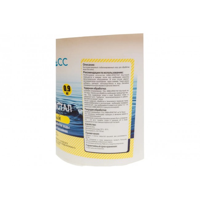 Аква - Кристал 0,9 кг быстрый, таб. по 20гр(дезинфекция)быстрорастворимый стаб. хлор, обработка воды