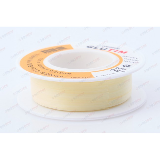 Количество в коробке: 500шт. Лента фторопластового уплотнительного материала (ФУМ-лента) – современный герметик резьбовых соединений – пластичный, прочный, химически стойкий, сохраняющий свойства в широком диапазоне температур, монтаж которого несложен даже неспециалисту. ФУМ-лента TIM – сантехнического, общепромышленного назначения, пригодная для трубопроводов жидкостей, газов, неагрессивных к полимер тетрафторэтилену (PTFE, тефлон, фторопласт). На поверхность уплотнителя нанесена пленка вазелинового масла. Интервал допустимых температур: –20… +200 °C.