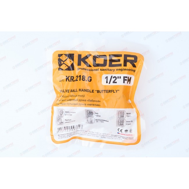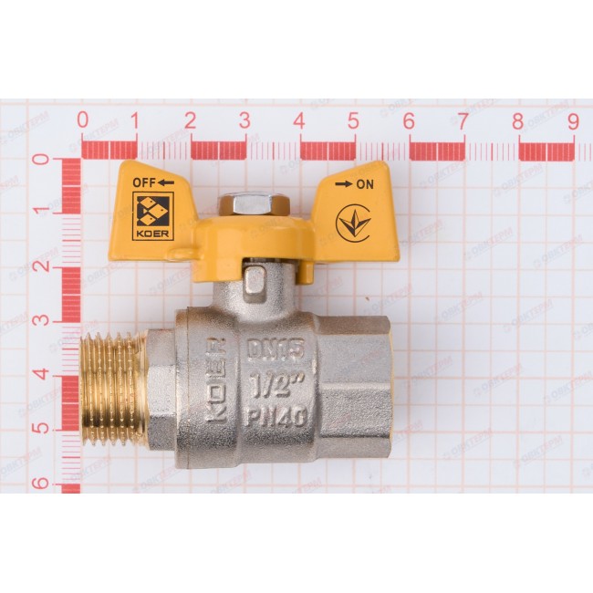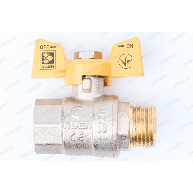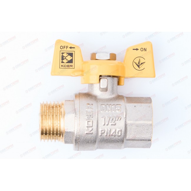Кран шаровый газовый 1/2" усиленный внутренняя-наружная резьба, бабочка KR0036 Koer