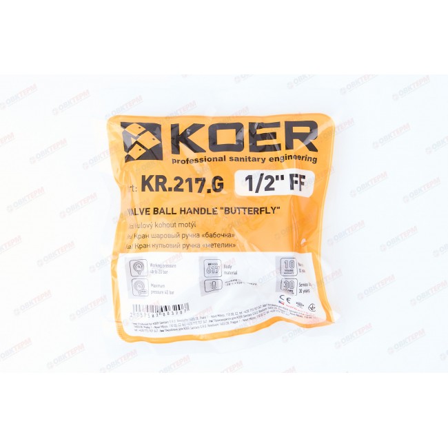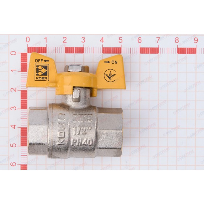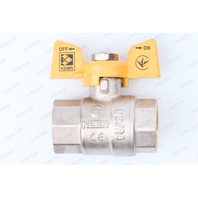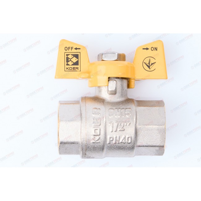 Кран шаровый газовый 1/2" усиленный внутренняя-внутренняя резьба, бабочка KR0032 Koer