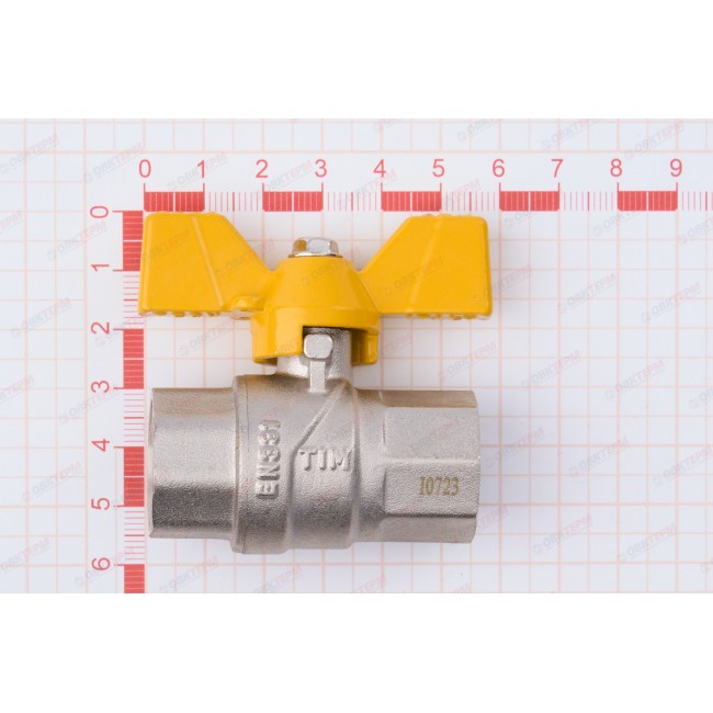 Кран шаровый газовый 1/2" внутренняя-внутренняя резьба, бабочка DE112H TIM