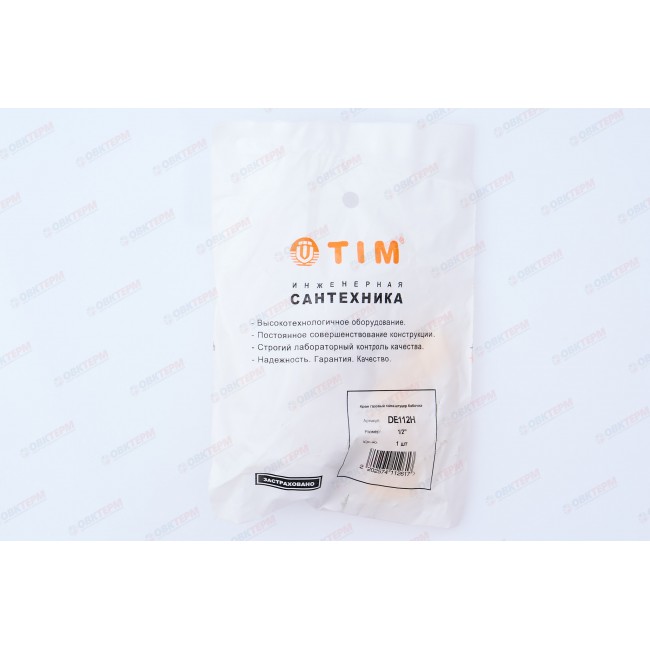 Количество в коробке: 60шт. Количество в упаковке: 15шт. Кран шаровой латунный для газа TIM рекомендован к установке в системах газоснабжения, предназначенных для подачи природного и сжиженного газа. Корпус, соединения и шар сделаны из высококачественной латуни методом горячего штампования и последующей механической - обработки. Хром - никелевое покрытие удовлетворяет самым высоким требованиям и стандартам. Кран шаровой латунный для газа TIM допускается к установке на трубопроводе для газоснабжения, сжатого воздуха и жидких углеводородов. TIM, ГШ 1/2", бабочка, арт. DE122H