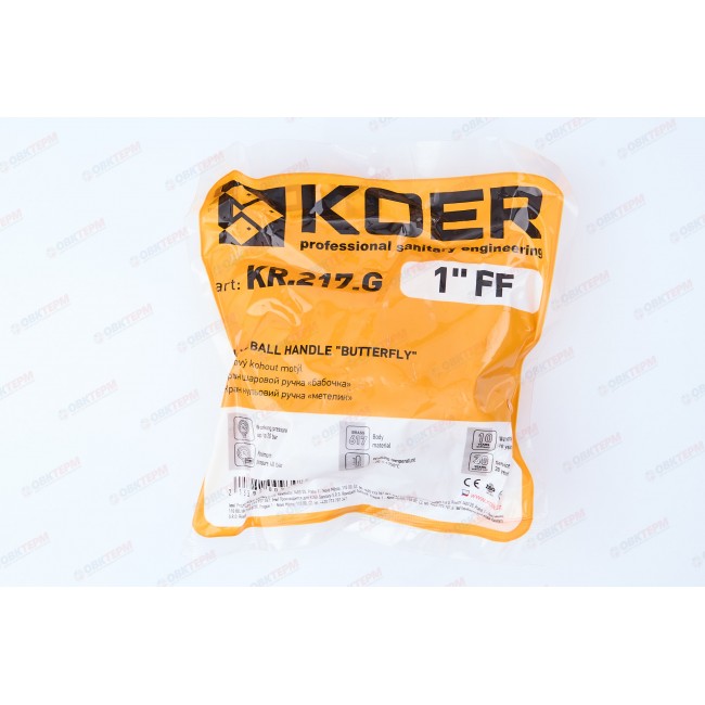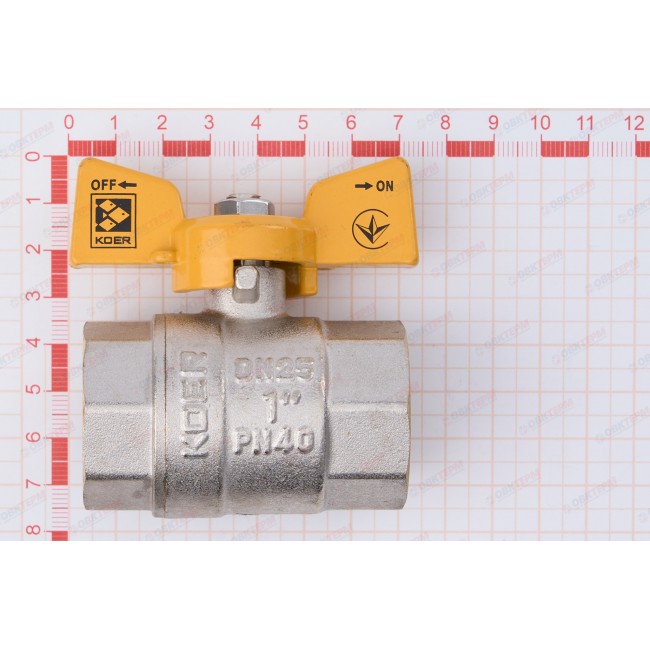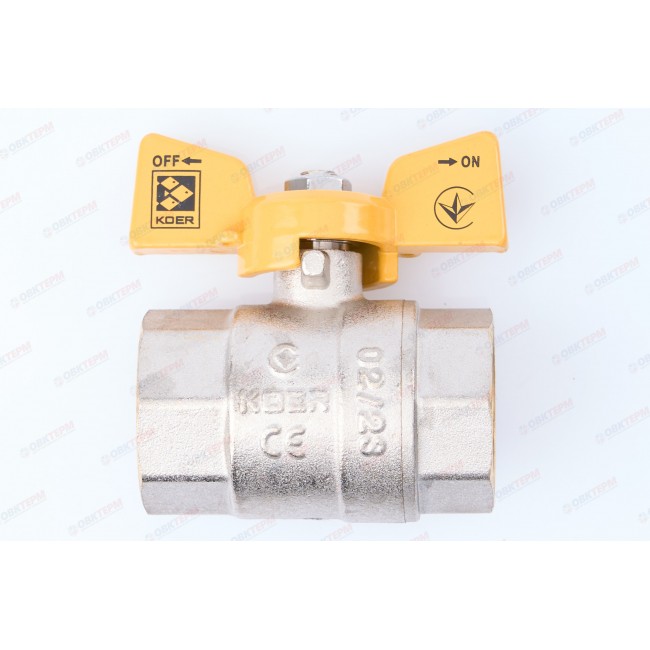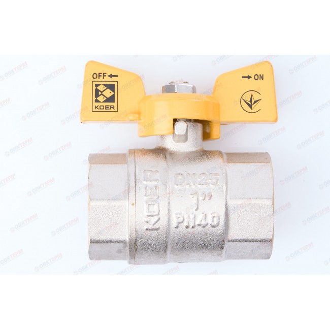 Кран шаровый газовый 1" усиленный, внутренняя-внутренняя резьба, бабочка KR0093 Koer