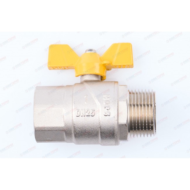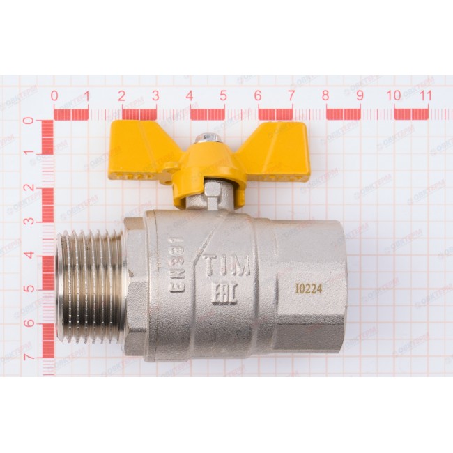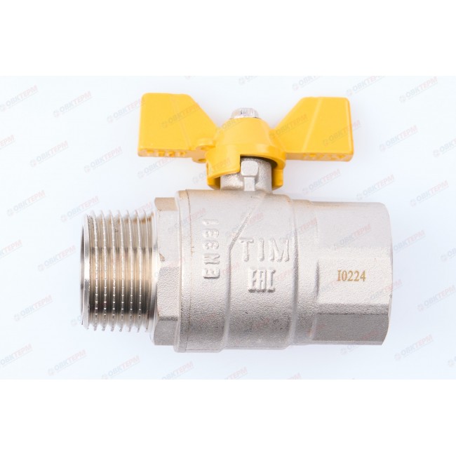 Кран шаровый газовый 1" внутренняя-наружная резьба, бабочка DE124H TIM