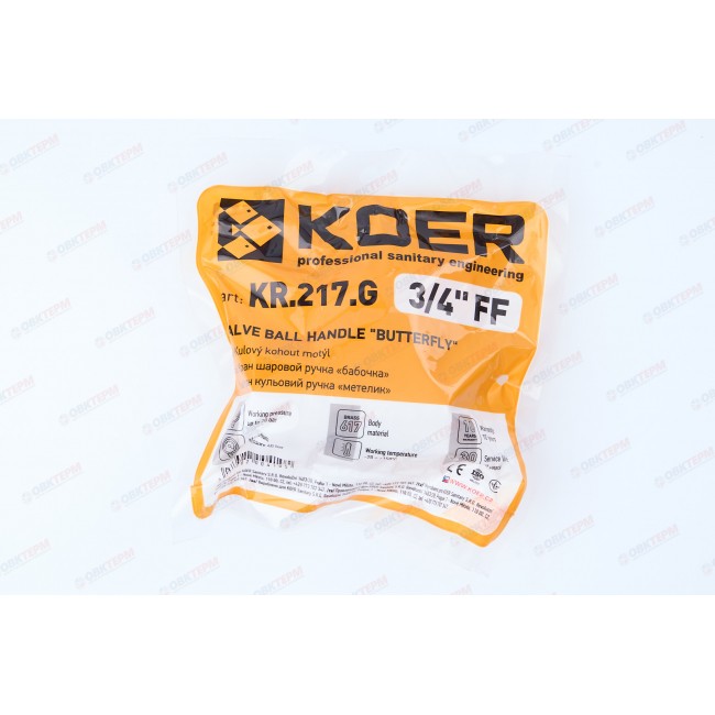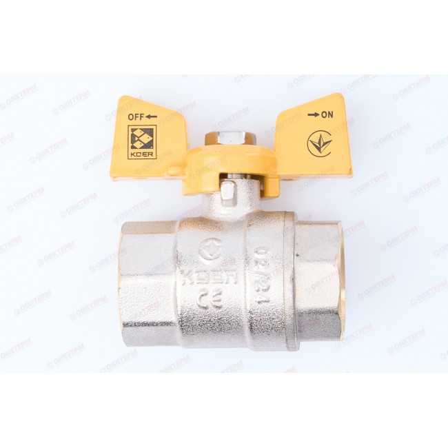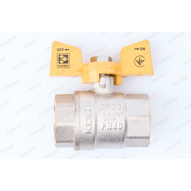 Кран шаровый газовый 3/4" усиленный внутренняя-внутренняя резьба, бабочка KR0041 Koer