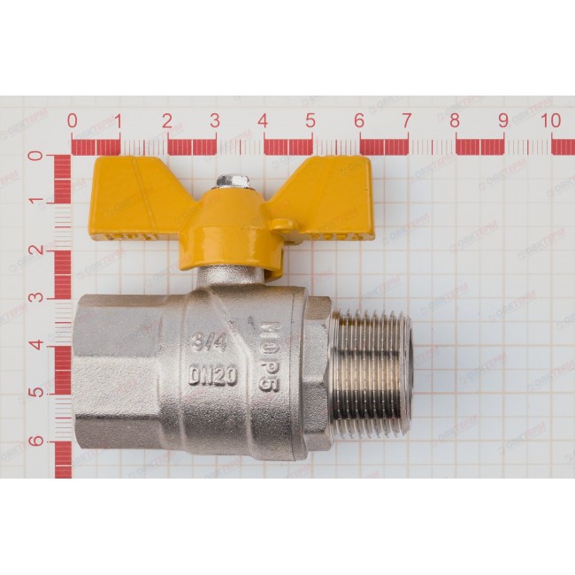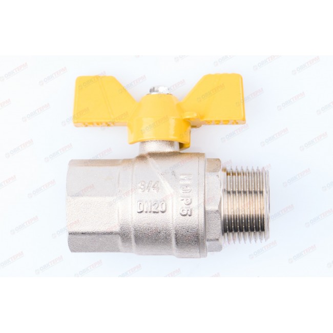 Кран шаровый газовый 3/4" внутренняя-наружная резьба, бабочка DE123H TIM