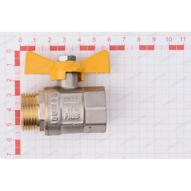Кран шаровый газовый 3/4" внутренняя-наружная резьба, бабочка ТСМ