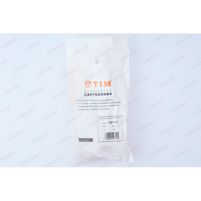 Кран шаровый газовый 3/4" внутренняя-внутренняя резьба, ручка DE113T TIM