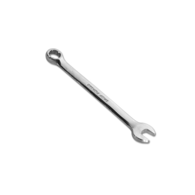 Ключ изготовлен из хромованадиевой стали, имеет полированное хромоникелевое покрытие. Профиль кольцевого зева имеет 12 граней, что увеличивает площадь соприкосновения рабочих поверхностей и снижает риск деформации граней крепежа при монтаже. Угол наклона кольцевого зева относительно плоскости ключа в 15 градусов делает монтаж более удобным. Ключ гаечный комбинированный, с открытым и кольцевым зевом предназначен для монтажа/демонтажа резьбовых соединений. Подходит для работы с любыми разновидностями шестигранного крепежа, в том числе в труднодоступных местах. Рабочий размер инструмента 12 мм.