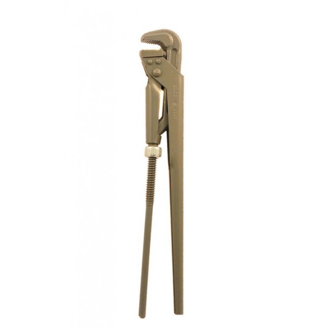 Ключ подходит для установки, демонтажа и ремонта сантехнического, водопроводного и газового оборудования. Предназначен для захвата, фиксации, вращения труб и соединительных деталей трубопроводов. Угол наклона губок составляет 90˚. Рабочая часть снабжена специальными зубьями, что обеспечивает надежность захвата гладких округлых предметов. Наклон зубьев против направления вращения. Диаметр захвата – 1 1/2". Ключ изготовлен из инструментальной углеродистой стали, устойчивой к деформации, истиранию, ударным нагрузкам, имеет длину 445 мм.
