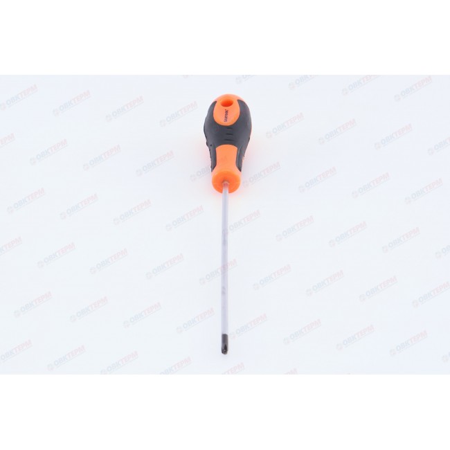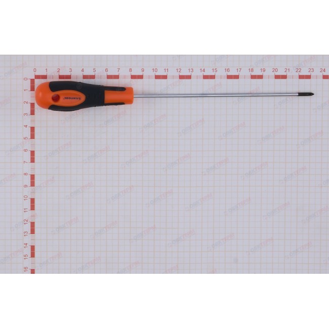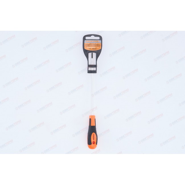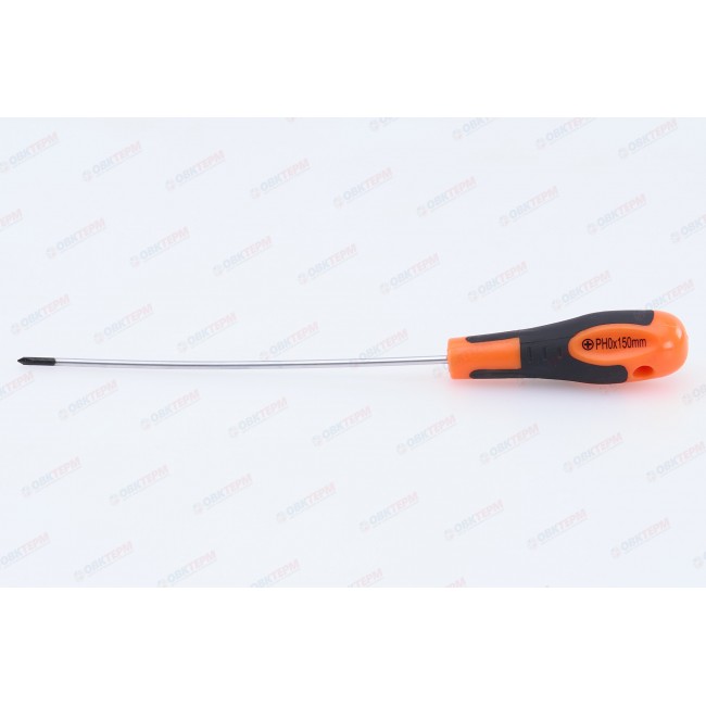 Отвертка крестовая предназначена для проведения слесарных работ в автомобильной промышленности, машиностроении, мебельной индустрии, а также в быту при монтаже оконных, дверных систем и других инженерных конструкций. Изготовлена из хромованадиевой стали, устойчивой к коррозии. Эргономичная двухкомпонентная рукоятка обеспечивает удобный захват и эффективное вращение. Длина стержня составляет 150 мм. Размер шлица PH 0.