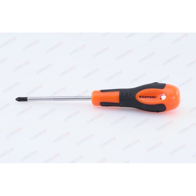 Отвертка крестовая Мастер №2 100мм CrV с двухкомпонентной ручкой Santool