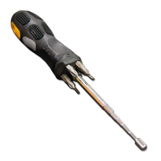 Отвертка с телескопическим стержнем и битами 6 насадок Santool