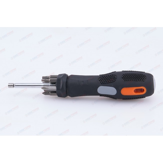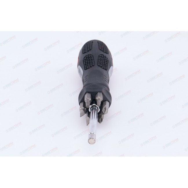 Отвертка предназначена для монтажа и демонтажа резьбовых соединений в труднодоступных местах. Битодержатель отвертки и биты изготовлены из высококачественной хромванадиевой стали. Оснащена эргономичной противоскользящей ручкой. В набор входят 8 предметов: 7 бит (SL – № 5; 6, PH – № 1; 2; 3, TORX – № 15; 20), рукоятка с телескопическим стержнем.