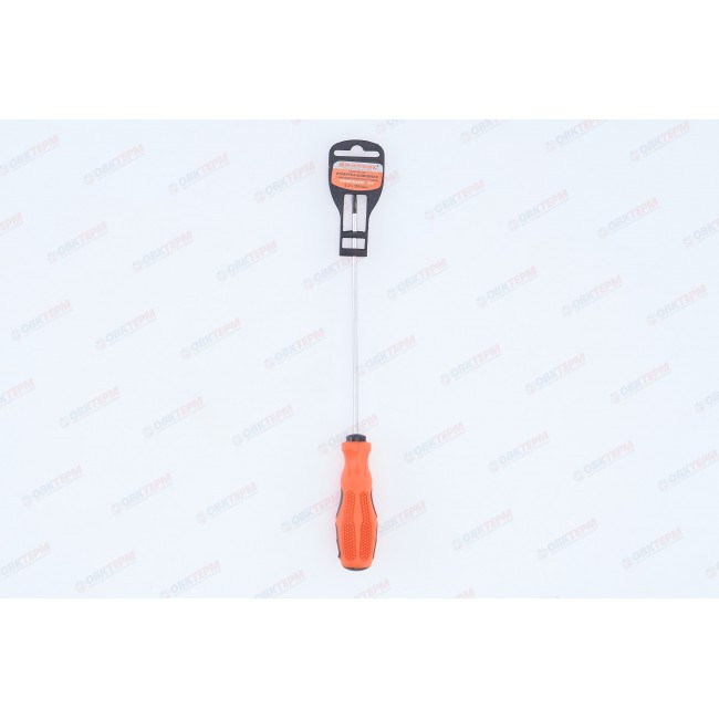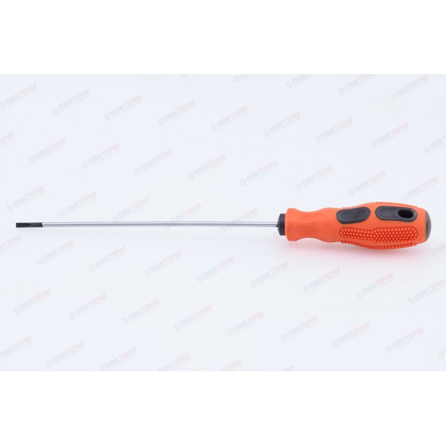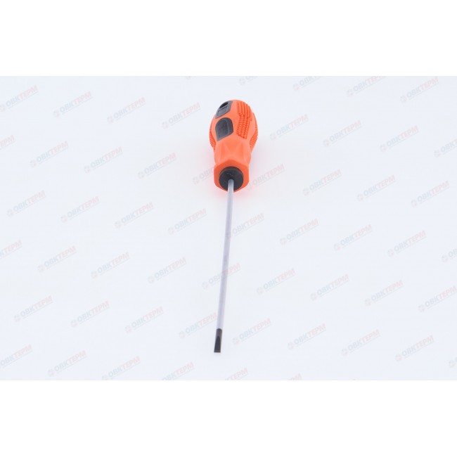 Отвертка шлицевая предназначена для проведения слесарных работ в автомобильной промышленности, машиностроении, мебельной индустрии, а также в быту при монтаже оконных, дверных систем и других инженерных конструкций. Изготовлена из хромованадиевой стали, устойчивой к коррозии. Эргономичная двухкомпонентная рукоятка обеспечивает удобный захват и эффективное вращение. Длина стержня составляет 150 мм. Размер шлица SL3,2.