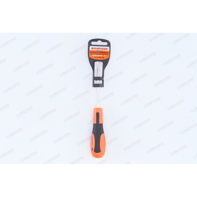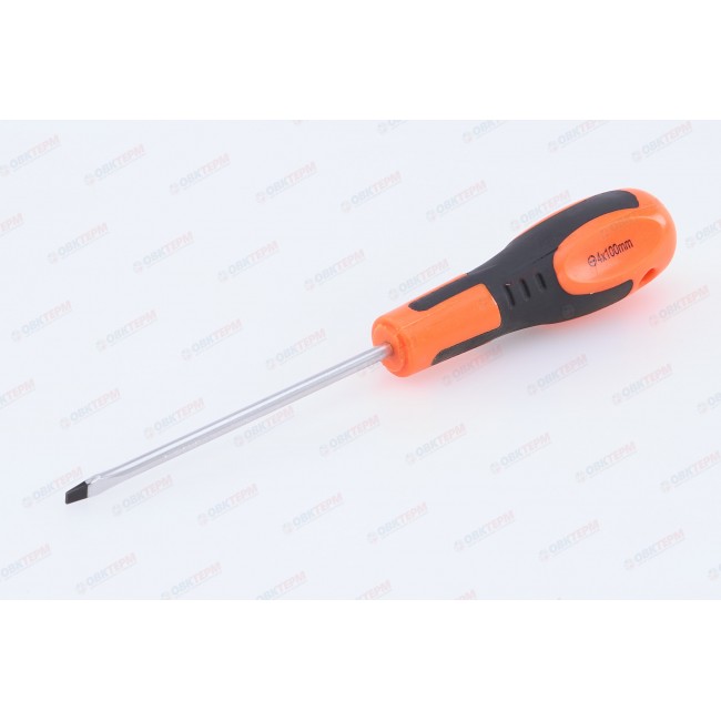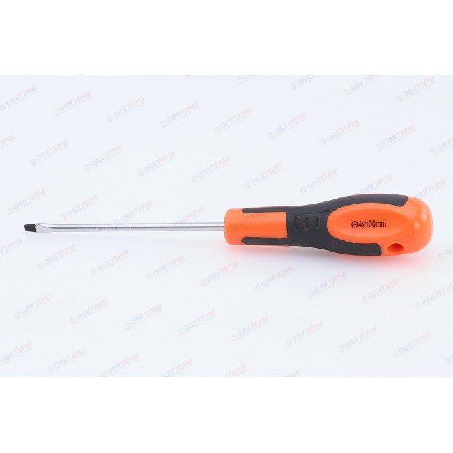 Отвертка шлицевая предназначена для проведения слесарных работ в автомобильной промышленности, машиностроении, мебельной индустрии, а также в быту при монтаже оконных, дверных систем и других инженерных конструкций. Изготовлена из хромованадиевой стали, устойчивой к коррозии. Эргономичная двухкомпонентная рукоятка обеспечивает удобный захват и эффективное вращение. Длина стержня составляет 100 мм. Размер шлица SL4.