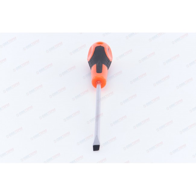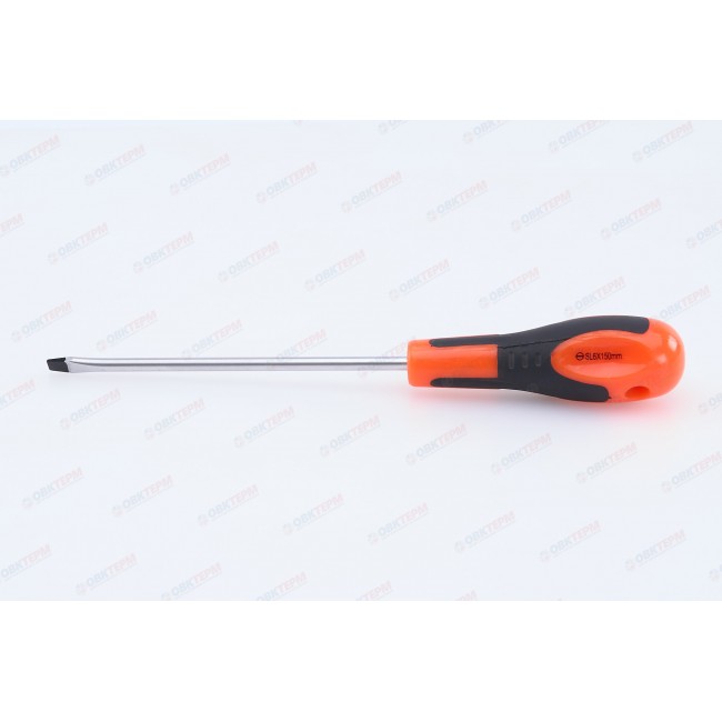 Отвертка шлицевая предназначена для проведения слесарных работ в автомобильной промышленности, машиностроении, мебельной индустрии, а также в быту при монтаже оконных, дверных систем и других инженерных конструкций. Изготовлена из хромованадиевой стали, устойчивой к коррозии. Эргономичная двухкомпонентная рукоятка обеспечивает удобный захват и эффективное вращение. Длина стержня составляет 150 мм. Размер шлица SL6.