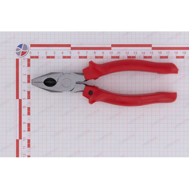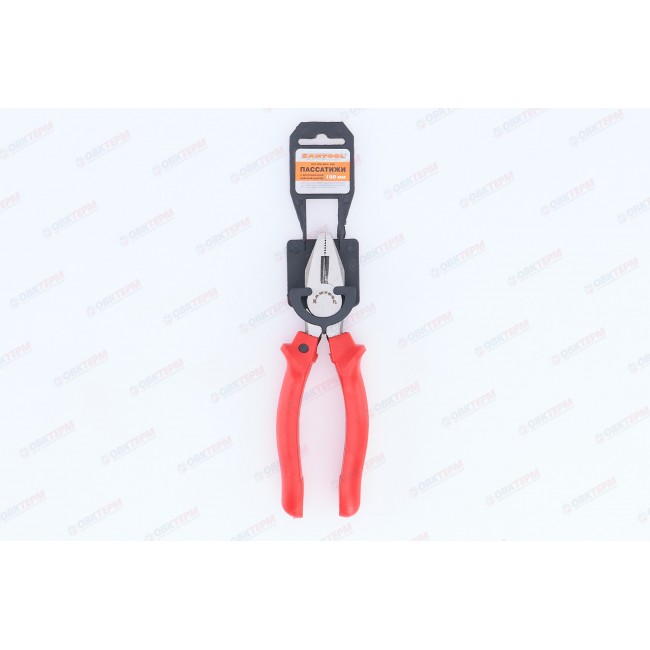 Пассатижи - многофункциональный ручной инструмент. Применяется в слесарно-монтажных работах. Объединяющий в себе функции: плоскогубцев; резака для рубки проволоки и электропроводов; приспособления для охвата и завертывания мелких трубок, соединительных муфт, ниппелей, гаек и т.п. Используются для фиксации предметов. Пассатижи изготовлены из стали, обладают рукоятками с декоративным покрытием красного цвета. Длина инструмента 180 мм.