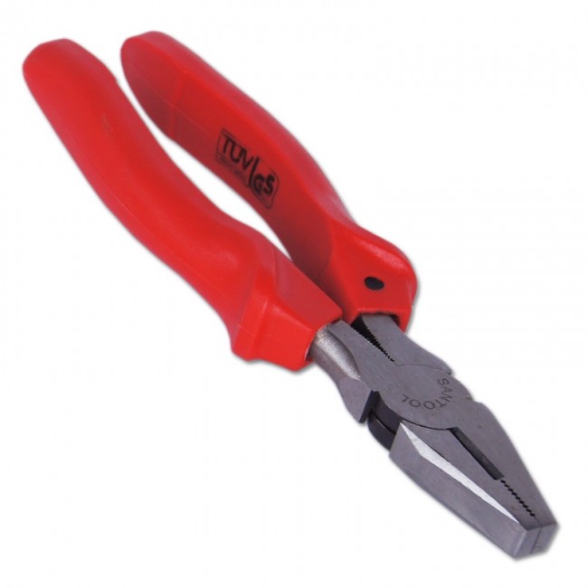 Пассатижи - многофункциональный ручной инструмент. Применяется в слесарно-монтажных работах. Объединяющий в себе функции: плоскогубцев; резака для рубки проволоки и электропроводов; приспособления для охвата и завертывания мелких трубок, соединительных муфт, ниппелей, гаек и т.п. Используются для фиксации предметов. Пассатижи изготовлены из стали, обладают рукоятками с декоративным покрытием красного цвета. Длина инструмента 200 мм.