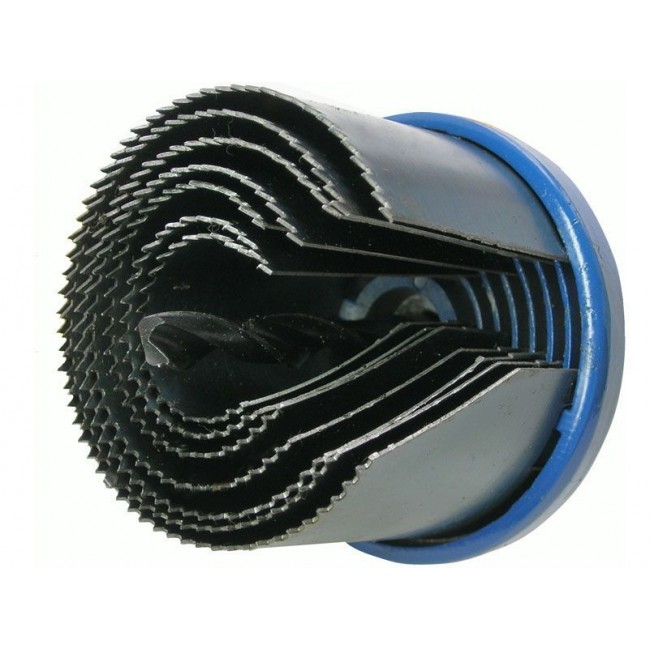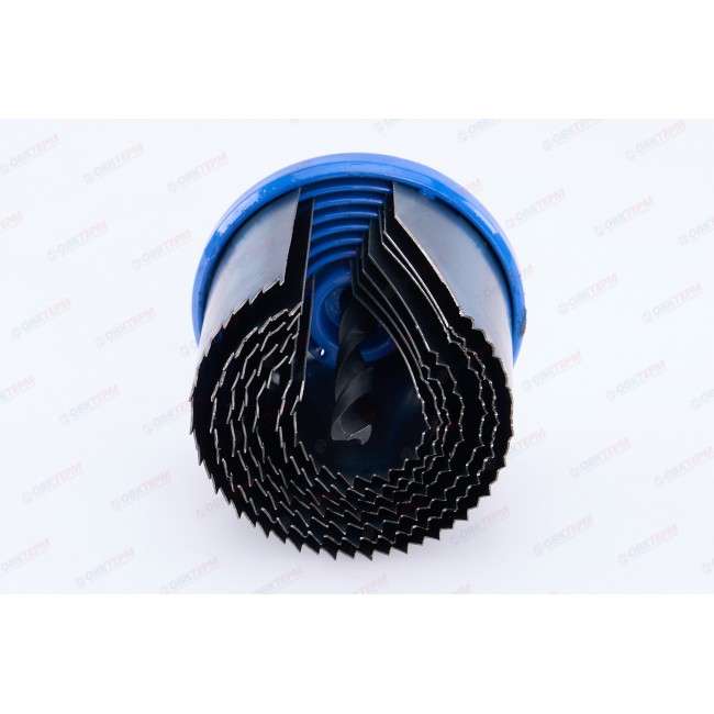 Пила круговая с каленым зубом Профи 2" используется с дрелями для сверления отверстий в твердой древесине, фанере, ДСП и гипсокартоне. Глубина составляет 50 мм. Диаметры лезвий пил: 26, 32, 38, 45, 50, 56, 63 мм. Центрирующее сверло диаметром 8 мм с шестигранным хвостовиком. Материал: усиленный металлический универсальный держатель с винтом, пилы из термообработанной 65 Mn стали.