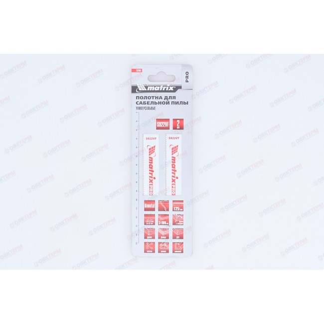 Универсальные полотна для сабельной пилы S922VF Matrix PRO 782001 с переменным шагом зубьев 1,8-2,5 мм, биметаллические (Bimetal), 2 шт. в упаковке, имеют рабочую длину 125 мм и позволяют быстро и качественно распиливать заготовки из древесины, пластика, листового металла, фанеры, ДСП, справляются также с алюминиевыми профилями и древесиной с гвоздями. В зависимости от материала глубина распила составляет от 3 до 100 мм. Полотна пригодятся на строительной площадке, во время ремонта, демонтажа различных конструкций, будут полезны дома и на даче.