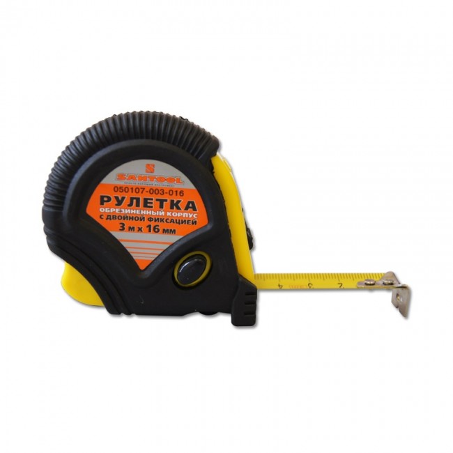 Рулетка 3м*16мм обрезиненный корпус, с двойной фиксацией SANTOOL