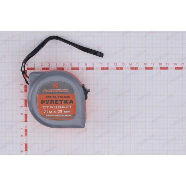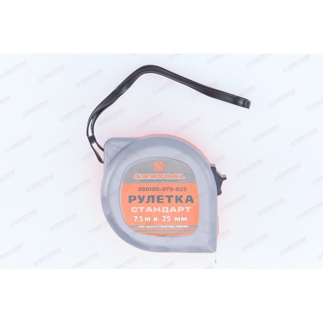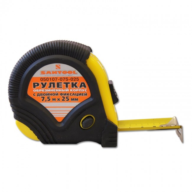 Рулетка 7,5м*25мм обрезиненный корпус, с двойной фиксацией SANTOOL