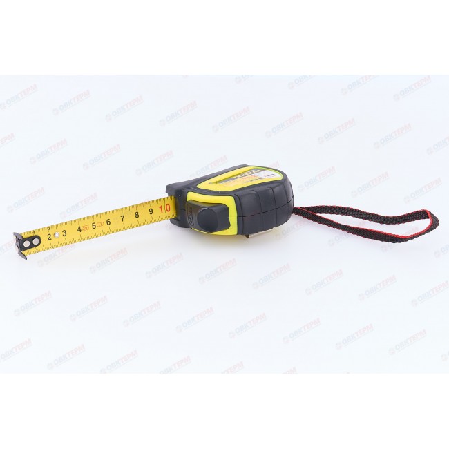 Рулетка предназначена для измерения размеров и расстояний. Изготовлена из высококачественной стали. Двухсторонняя лента с полимерным покрытием, которое обеспечивает увеличенную защиту от износа. Эргономичный пластиковый корпус с противоскользящими вставками предотвращает проскальзывание рулетки в руке. Снабжена двухсторонним крючком с магнитом и тканевым ремешком. Автоматический механизм фиксации ленты. Размеры ленты 3 м * 16 мм. Цена деления – 1 мм.