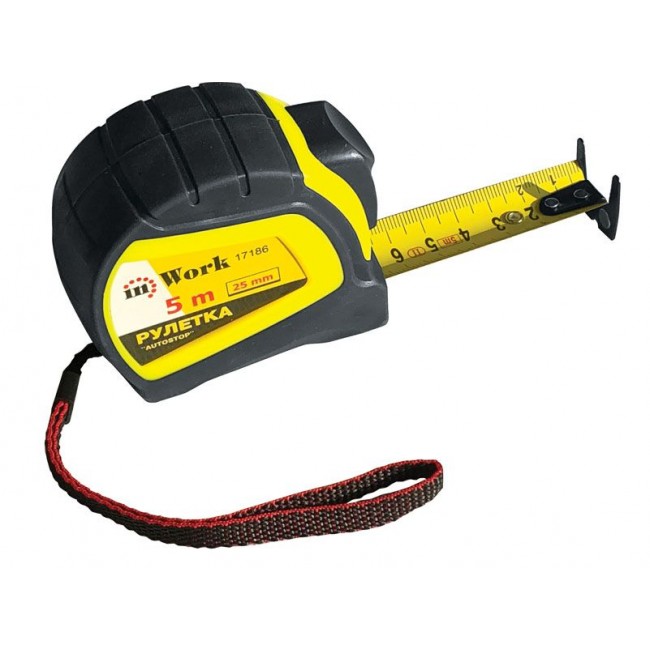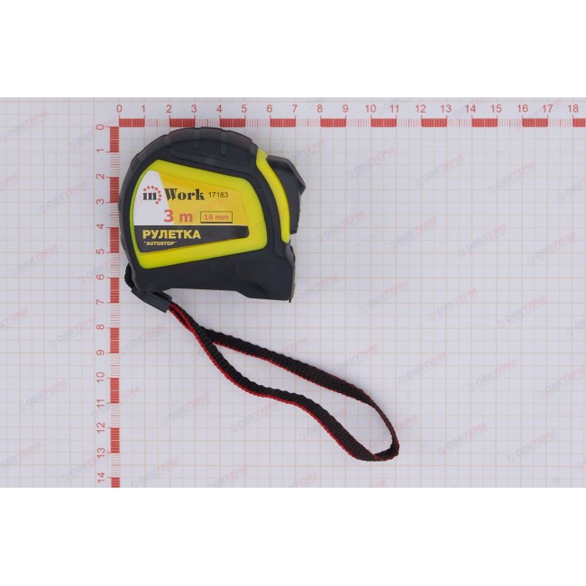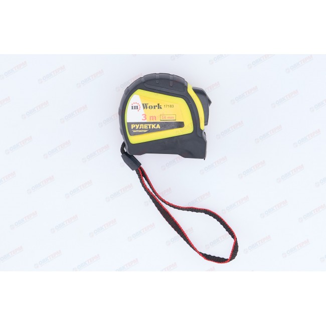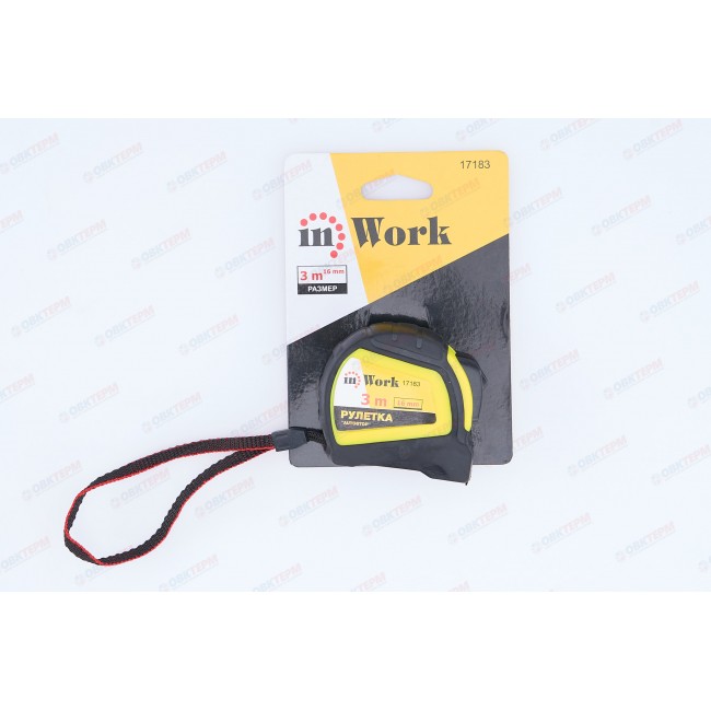 Рулетка Autostop 3м*16мм полимерное покрытие, 2-х сторонний крючок, магнитный зацеп InWork