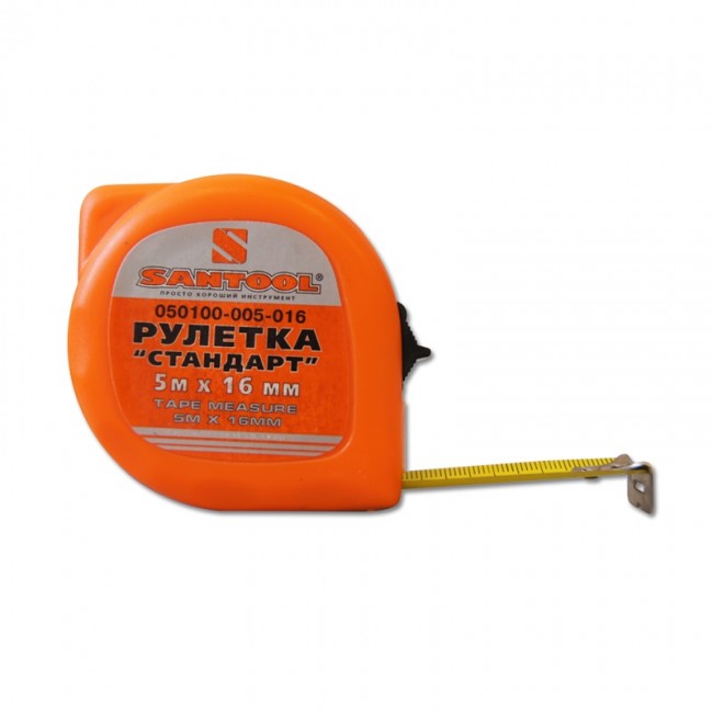 Рулетка СТАНДАРТ 5м*16мм с фиксатором SANTOOL