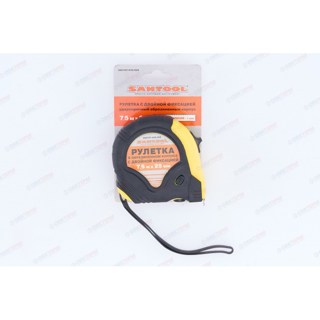 Рулетка СТАНДАРТ 7,5м*25мм с фиксатором SANTOOL