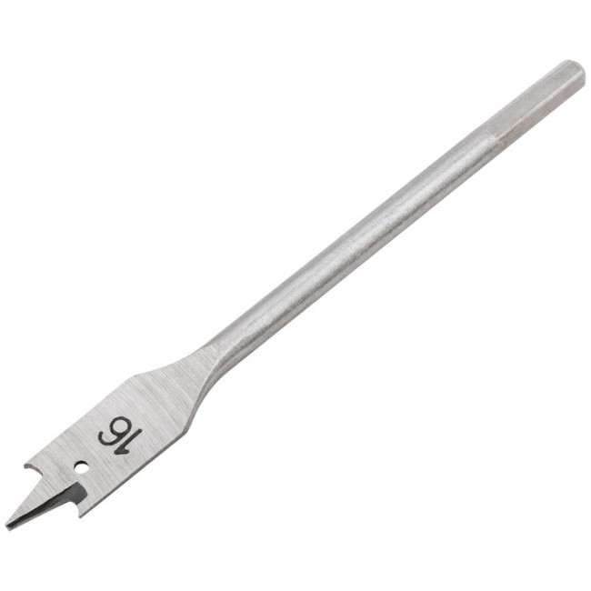 Перовое сверло изготовлено из инструментальной стали и оснащено шестигранным хвостовиком, который обеспечивает надежную фиксацию оснастки в патроне во время работы. Применяют для сверления дерева.