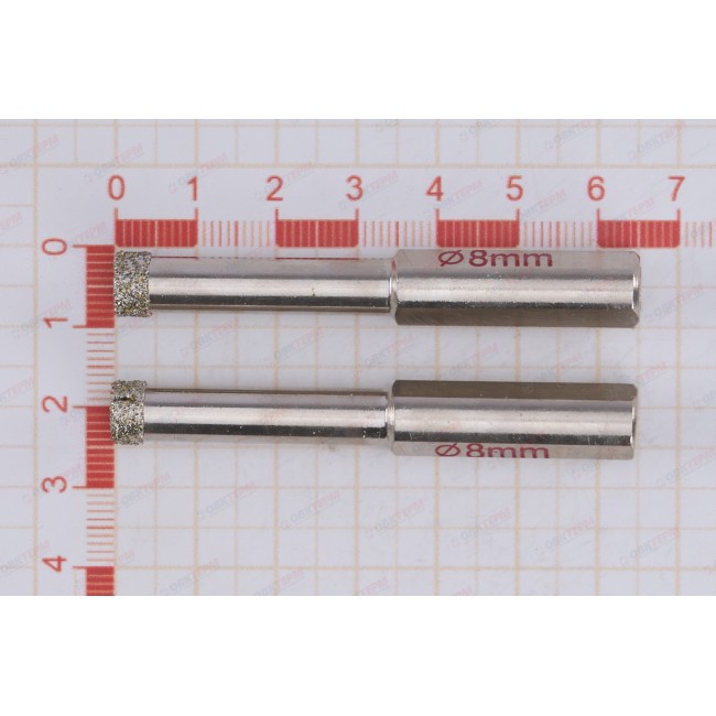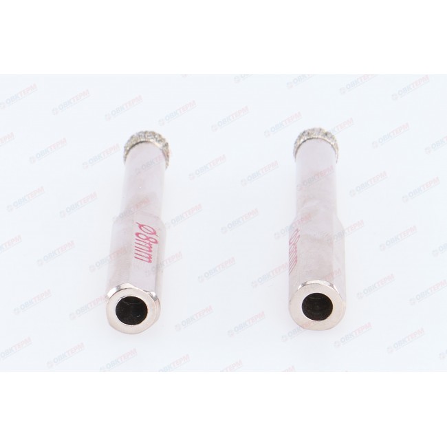 Сверло изготовлено из высококачественной стали. Рабочая кромка сверла имеет алмазное напыление, имеющее высокую эффективность и точность реза. Компенсационные пропилы в теле сверла предотвращают выгибание корпуса при нагреве и позволяют улучшать отвод опилок из зоны резания. Для эффективной работы сверла необходимо обеспечить подвод воды. Сверло предназначено для получения отверстий в стекле. Размер инструмента 8 x 70 мм.