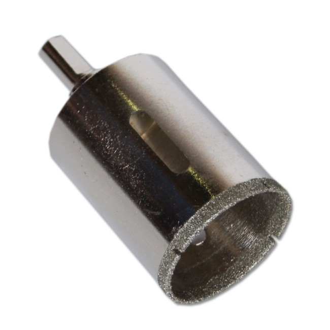 Сверло изготовлено из высококачественной стали. Рабочая кромка сверла имеет алмазное напыление, имеющее высокую эффективность и точность реза. Компенсационные пропилы в теле сверла предотвращают выгибание корпуса при нагреве и позволяют улучшать отвод опилок из зоны резания. Для эффективной работы сверла необходимо обеспечить подвод воды. Сверло предназначено для получения отверстий в стекле.