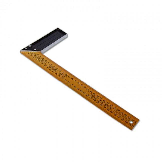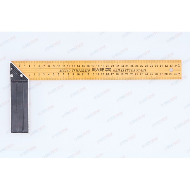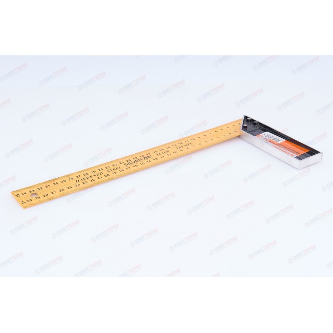 Угольник металлический это измерительный инструмент, предназначенный для разметочных и поверочных операций во время строительных, столярных или слесарных работ. Окрашен в желтый цвет. Имеет двухстороннюю шкалу. Длина большей стороны составляет 350 мм.