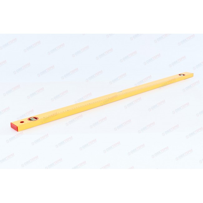 Ударопрочный алюминиевый профиль. Фрезерованная рабочая поверхность обеспечивает дополнительную точность измерения. Имеет три измерительных глазка для проверки отклонений по горизонтали, вертикали и под углом 45 градусов, а также линейку. Покрыт эмалью для избежания коррозии. Длина 1000 мм.
