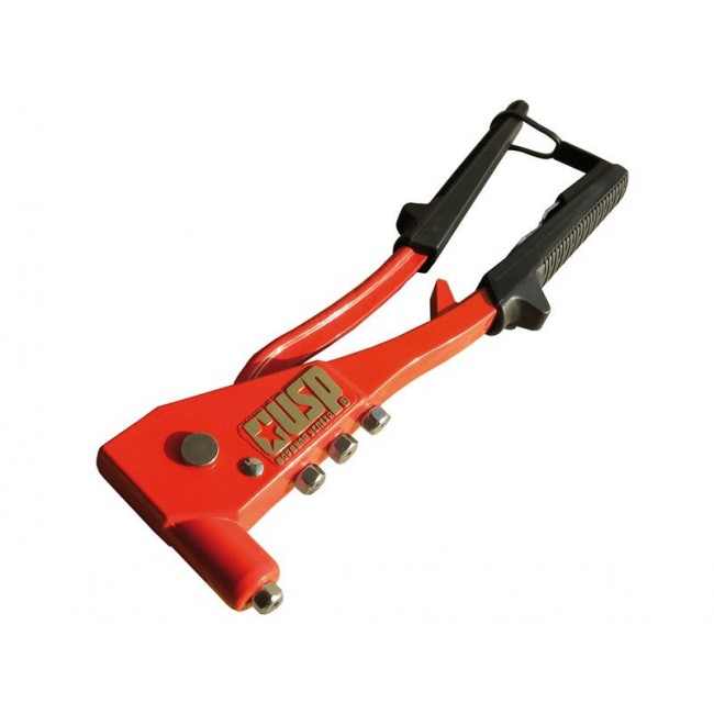 Для крепления вытяжных алюминиевых заклепок. 4 быстросменные насадки, пружинный рычаг для выброса сердечника от заклепок, рукоятка с покрытием из ПВХ пластика.