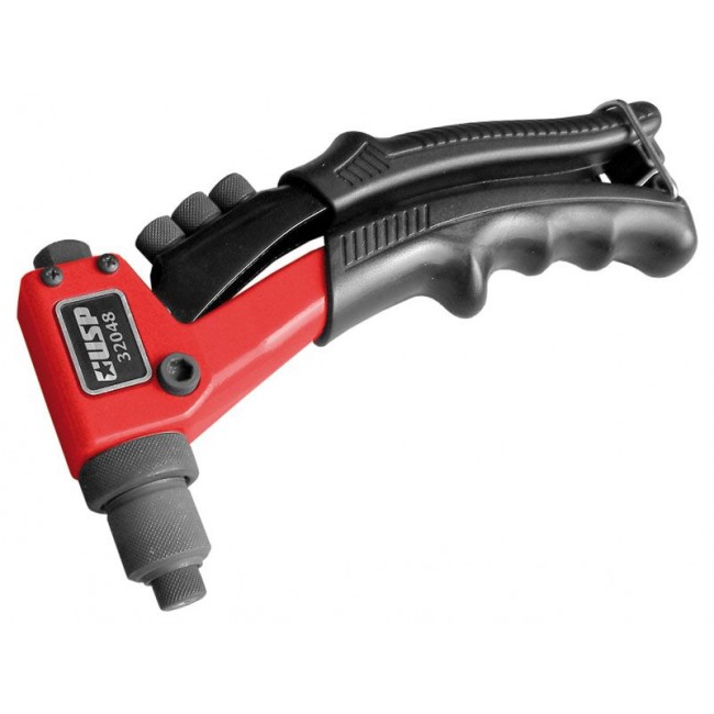 Применяется при работе по соединению листового металла, различных тонкостенных конструкций, металлических профилей. Рабочие части инструмента изготовлены из конструкционной стали. Оснащен эргономичными пластмассовыми рукоятками с фиксатором. В комплект заклепочника входят четыре насадки под разные диаметры заклепок и ключ для их замены. Длина инструмента 200 мм.