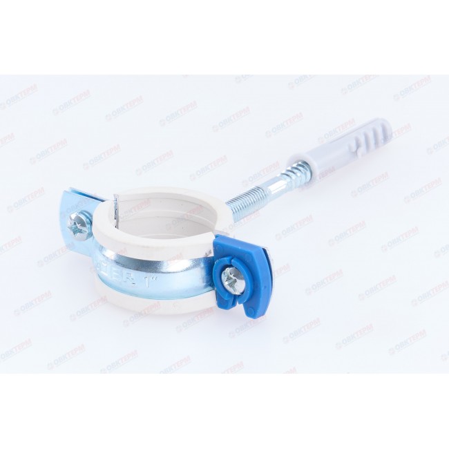 Количество в упаковке: 100шт. Хомут для труб с шурупом или трубодержатель изготавливается из углеродистой стали, имеющей покрытие из цинка. Во избежания механического повреждения труб оснащается резиновой прокладкой. Данный тип изделий относиться к неразборным так как в конструкции отсутствует возможность замены шурупа!