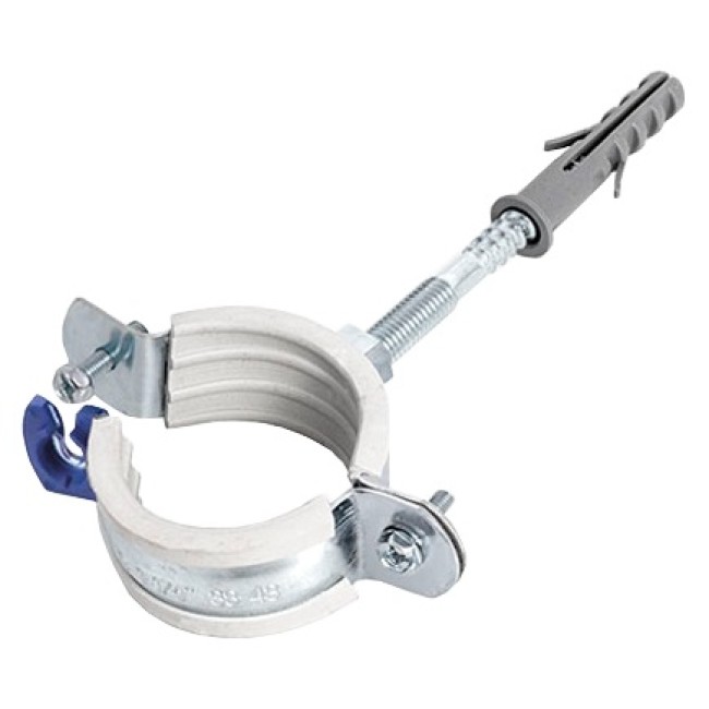 Количество в упаковке: 80шт. Хомут для труб с шурупом или трубодержатель изготавливается из углеродистой стали, имеющей покрытие из цинка. Во избежания механического повреждения труб оснащается резиновой прокладкой. Данный тип изделий относиться к неразборным так как в конструкции отсутствует возможность замены шурупа!