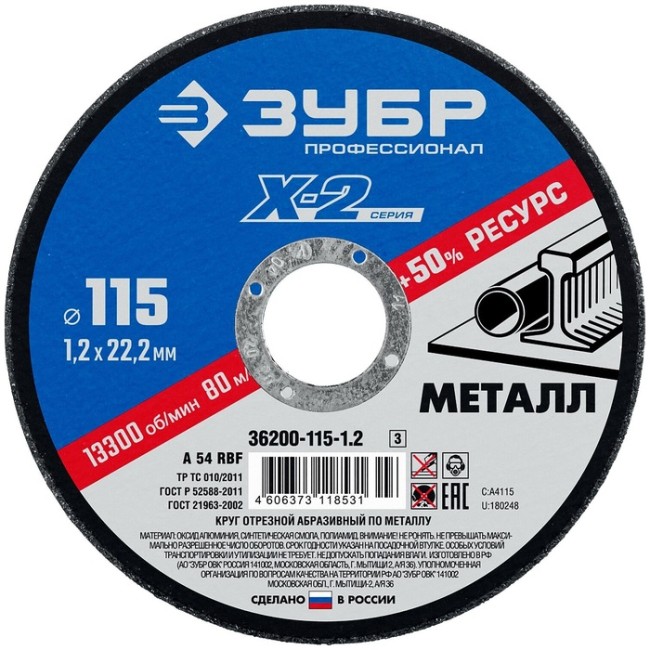 Диск оснащен компенсаторами (теплосъёмниками), которые обеспечивают отвод излишнего тепла и напряжения с корпуса диска, что позволяет избежать деформации при продолжительной работе с твёрдыми материалами.
