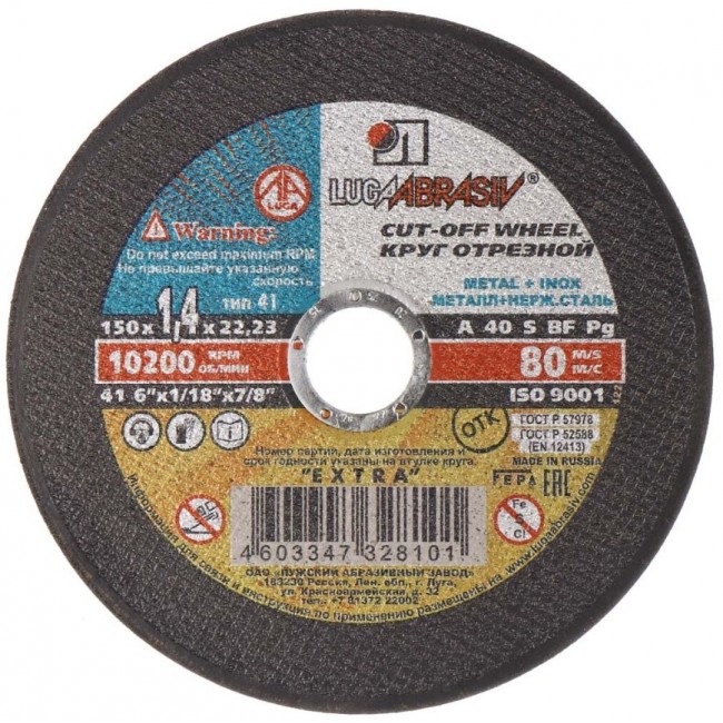 Круг отрезной для металла d150х1,4 мм (25 шт/уп) LUGA