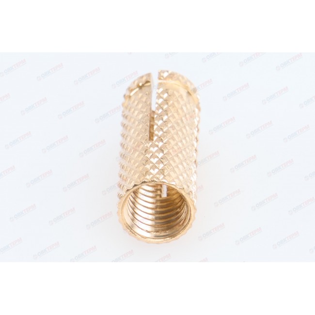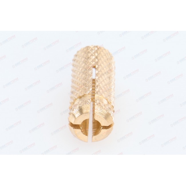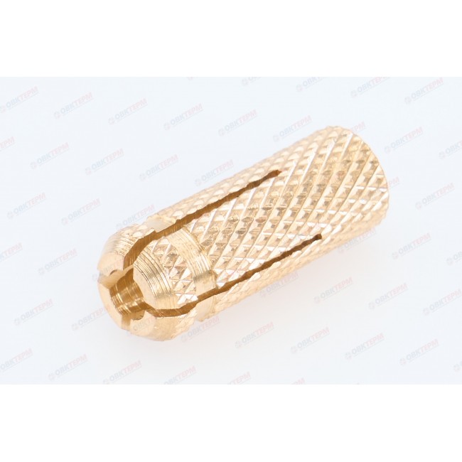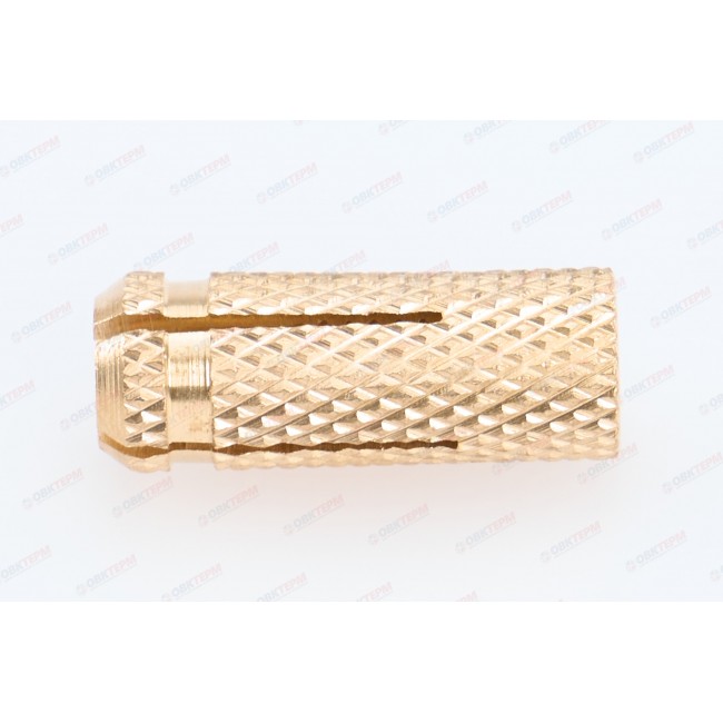 Анкер латунный (цанга) предназначен для фиксации крупногабаритных элементов к полнотелым основаниям (кирпич, бетон и проч.). Такой вид крепежа используется при монтаже подвесных потолков, прокладки кабельных каналов и фиксации небольших грузов. Конструктивная особенность латунного анкера - резьба, расположенная на его внутренней части, что позволяет вкручивать в анкер различные крепежные элементы. Важно, чтобы резьба закрепляемой детали полностью соответствовала внутренней резьбе анкера. Анкер изготовлен из латуни, что повышает его антифрикционные и механические свойства. Увеличивается стойкость к коррозии. Латунь хуже стали проворачивается в отверстии основания.