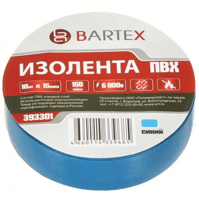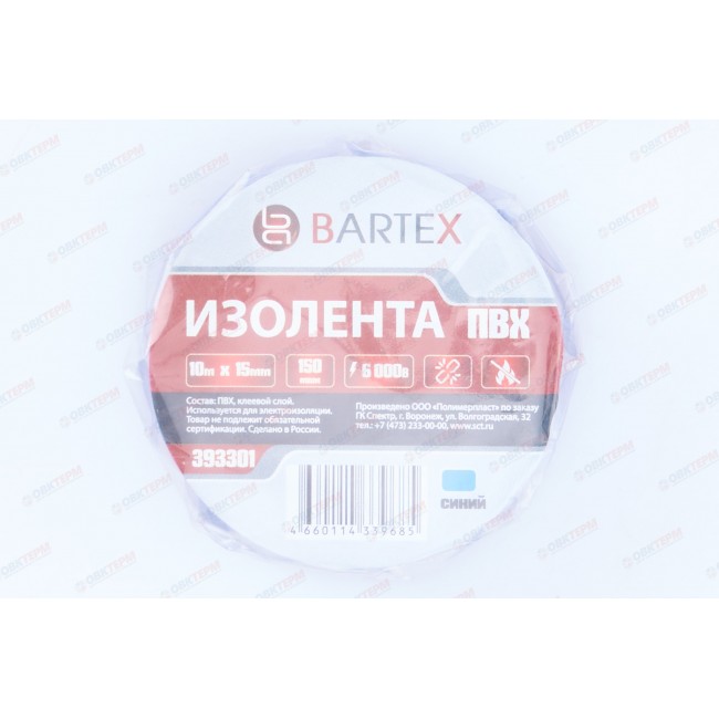 Изолента ПВХ 15мм*10м синяя (10 шт/уп) Bartex