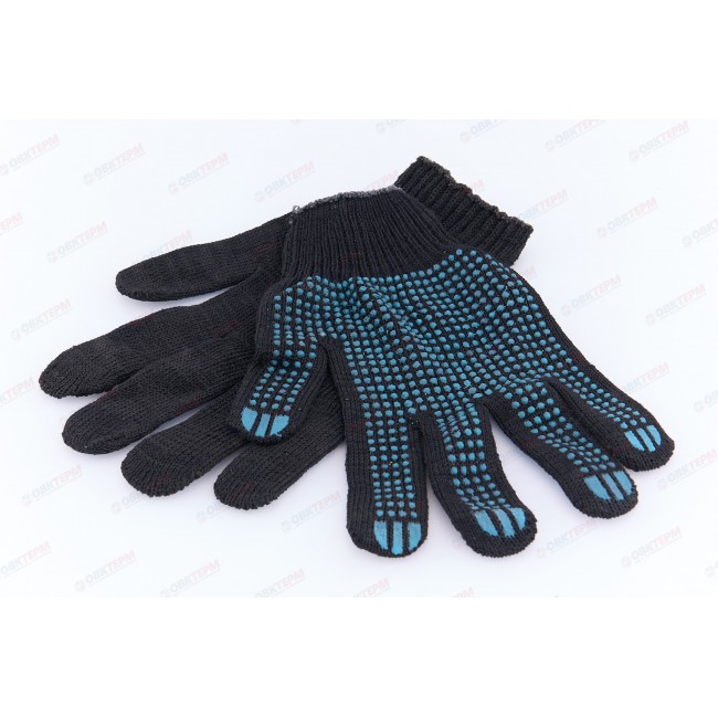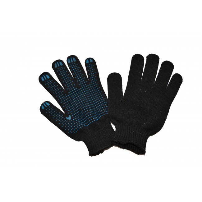 Трикотажные перчатки защищают руки от загрязнений и лёгких механических повреждений (порезов, ссадин). Применяются при строительных и погрузочно-разгрузочных работах. Материал: 100% хлопок, с напылением из ПВХ, благодаря которому улучшается сцепление и предотвращает скольжение предметов. 5 нитей, класс вязки - 10. Эластичная манжета на резинке хорошо фиксирует перчатки на руках.