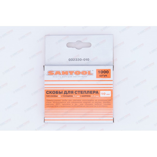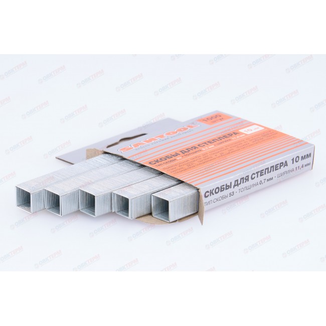 Скобы для степлера 10 мм, толщина 0,75 мм, Тип 53, 1000 шт/уп SANTOOL